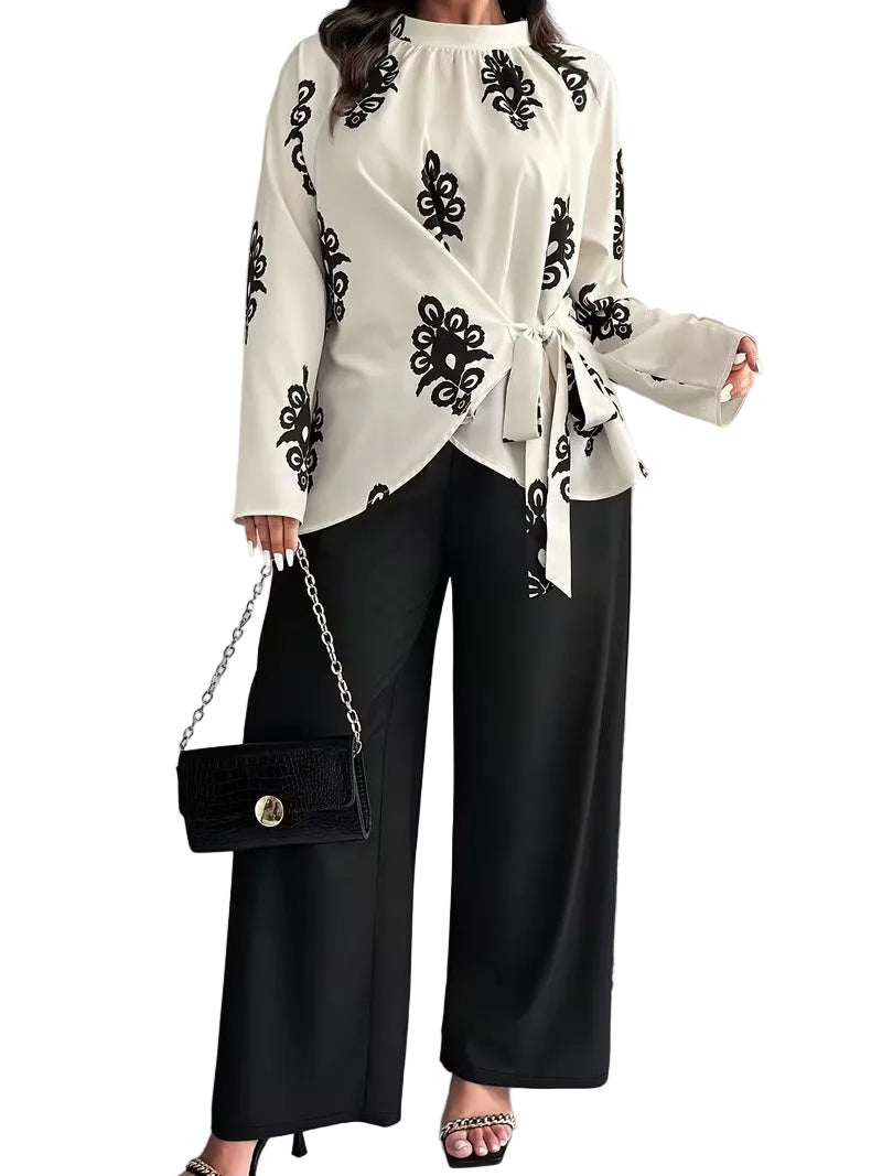 Women's Printed Top and Wide-Leg Trousers Set